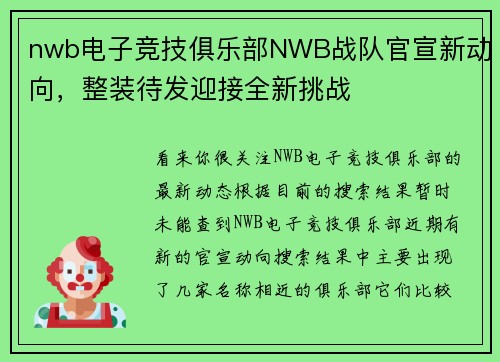 看起来你对NBA电竞领域的激烈比拼很感兴趣 。不过我查阅到的搜索结果,主要都是关于真实NBA季后赛和常规赛的报道,并没有涉及NBA电子竞技(例如NBA 2K系列游戏赛事)的具体比分信息。ag一飞冲天吃R...